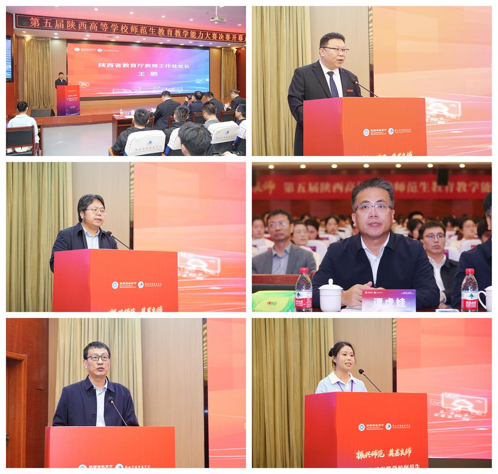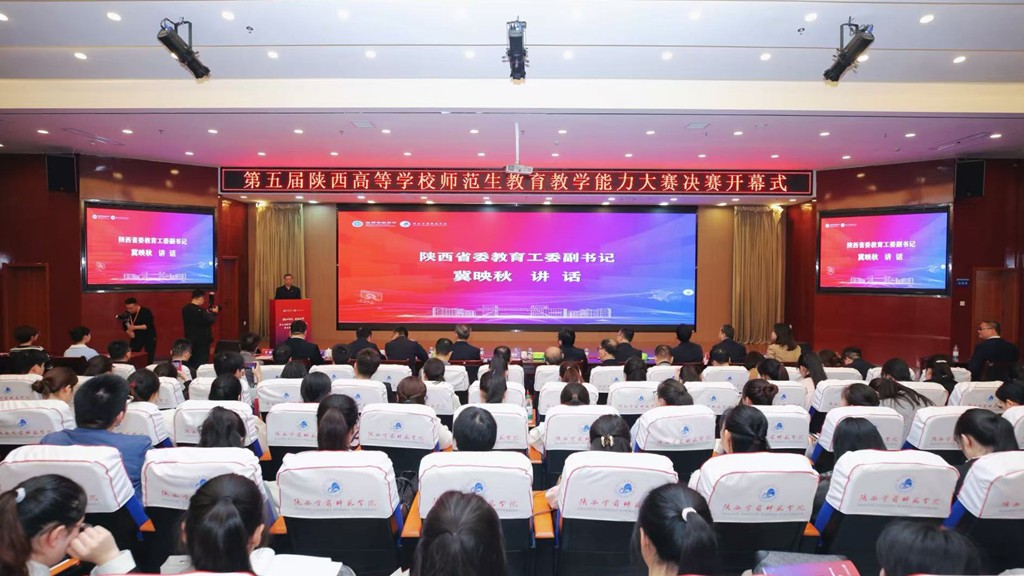 4月11日至12日,第五届陕西高等学校师范生教育教学能力大赛在我校长安校区顺利举行。本次大赛由陕西省教育厅主办、陕西学前师范学院承办、陕西师范大学指导。陕西省委教育工委副书记冀映秋,我校党委书记、校长张健,副校长李明军,以及来自陕西师范大学、延安大学、西北工业大学、西安交通大学、渭南师范学院、西安文理学院、宝鸡文理学院、商洛学院等相关高校的校领导、教务处负责人、带队教师、指导教师代表及215名参赛选手参加了开幕式。开幕式由陕西省教育厅教师工作处处长王鹏主持。